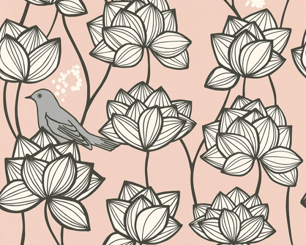 Papel de parede Palila, com elementos neutros e elegantes.